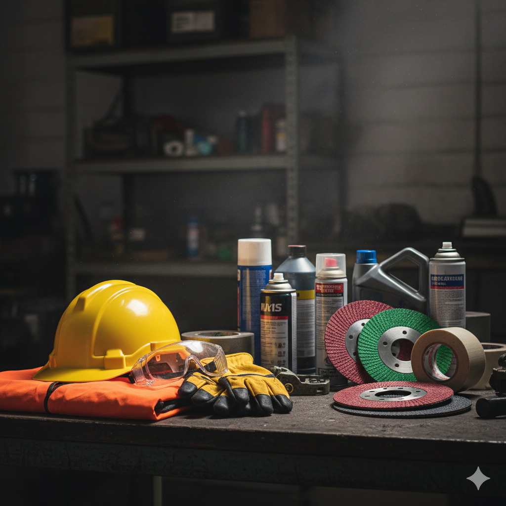 Artículos de protección personal, insumos de mantención y discos abrasivos